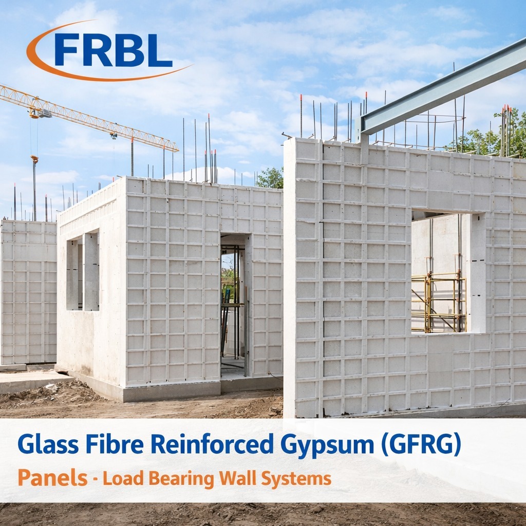 FRBL manufactures Glass Fibre Reinforced Gypsum (GFRG) panels engineered for load-bearing wall construction. These panels offer exceptional structural strength while significantly reducing construction time compared to conventional brick masonry.