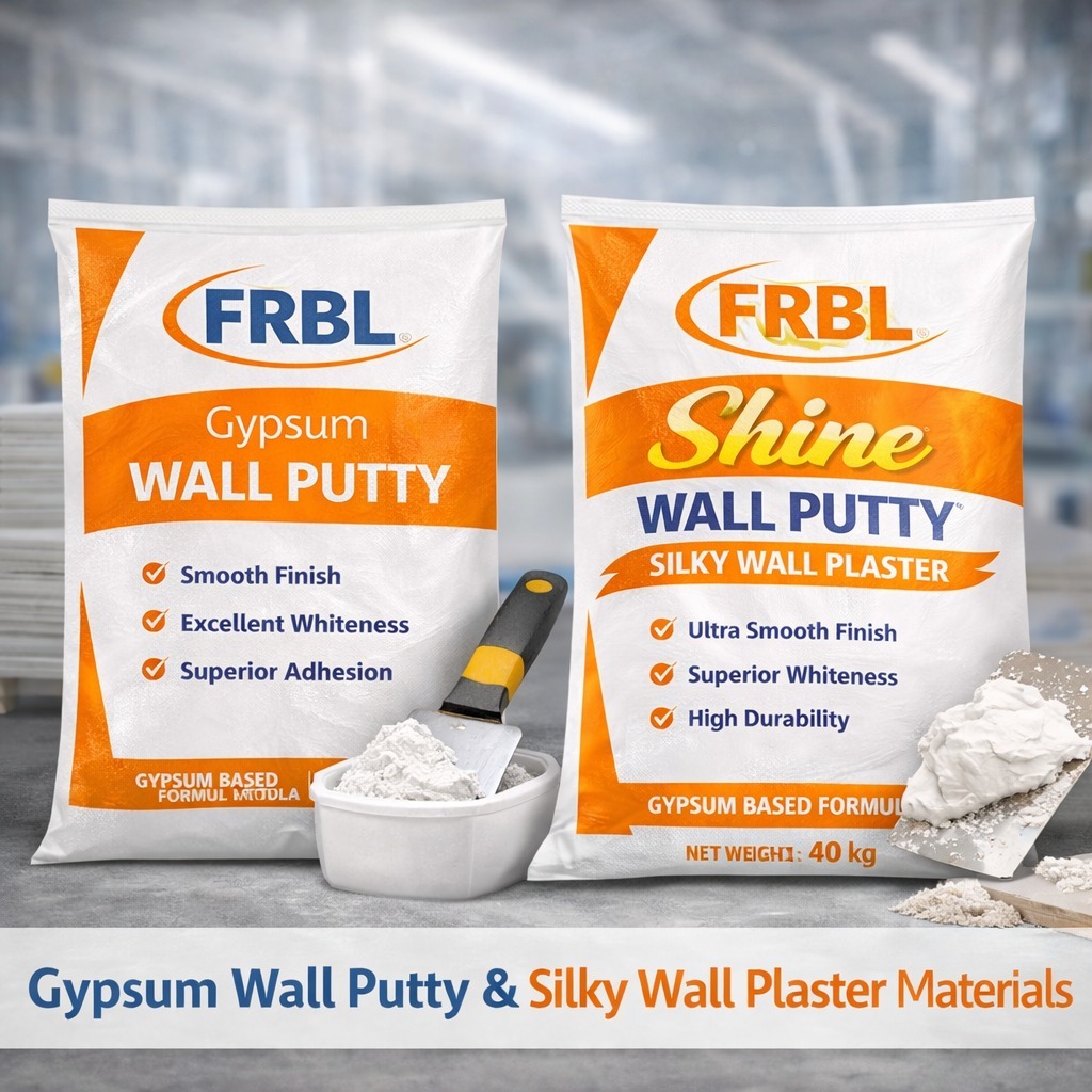FRBL manufactures high-quality gypsum wall putty and silky wall plaster materials that deliver an ultra-smooth, bright white, and long-lasting surface. These products enhance paint adhesion, reduce paint consumption, and improve overall wall aesthetics.